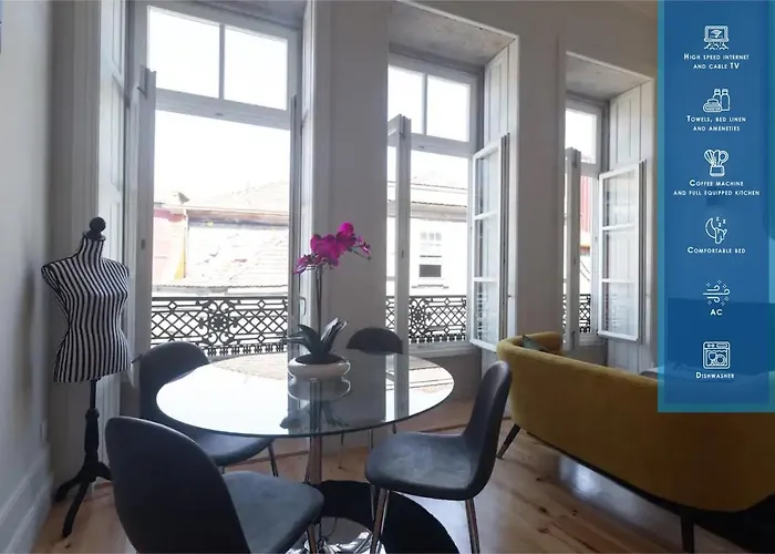 Основные достопримечательности Порту, такие как площадь Алиадос и продовольственные рынки, расположены неподалеку. Также гости могут прогуляться к Рынку Больян, что находится в 450 метрах от этих апартаментов площадью 39 м^2. До моста дона Луиша I можно доехать за несколько минут.